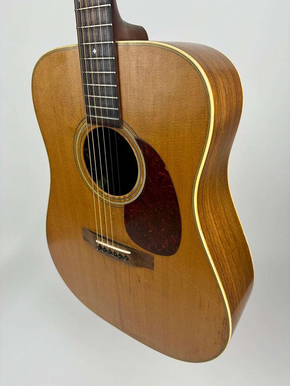 1987 Martin Shenandoah in good condition for an instrument approaching 40 years of constant service. There is a repaired center seam crack (cleated/glued) and lots of play wear/finish checking but in excellent structural condition. Fresh neck re-set, full re-fret, and set up.