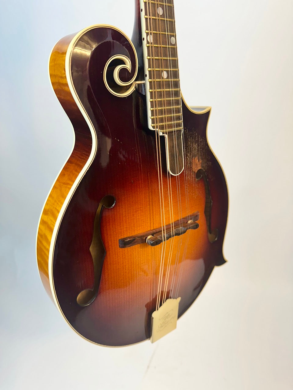 This is an absolute powerhouse F5 and certainly one of the finest sounding examples of the modern Gibson era that we have encountered. Beautiful dry, fundamental tone in the best way possible with an incredible amount of power and depth. This mandolin has one of the best chops of any instrument that we have ever had come through our shop, and we have had a lot! Equally impressive playing double stops or single notes. Great balance across the strings and up the neck. The mandolin has been professionally set up and plays wonderfully in all positions with no issues whatsoever. A great deal on an amazing instrument for those unbothered by aesthetic wear. 1-1/16" nut width, radiused fretboard with EVO frets and scooped extension. Original hardshell case included.