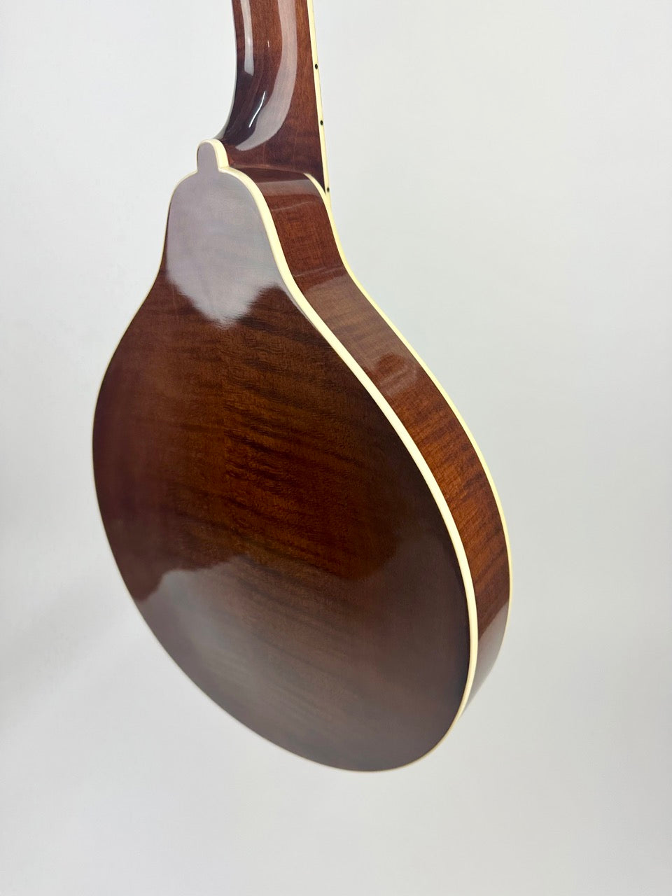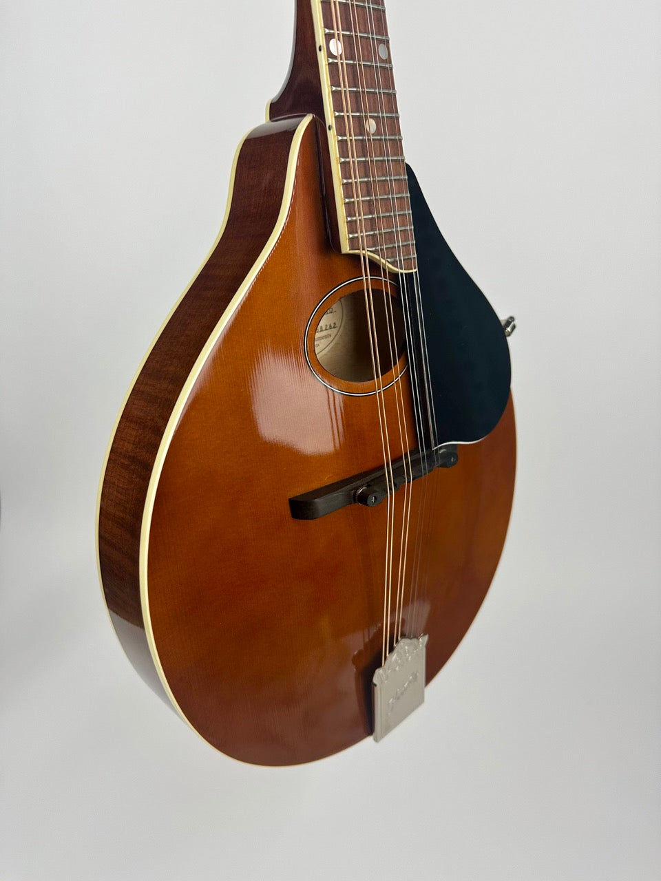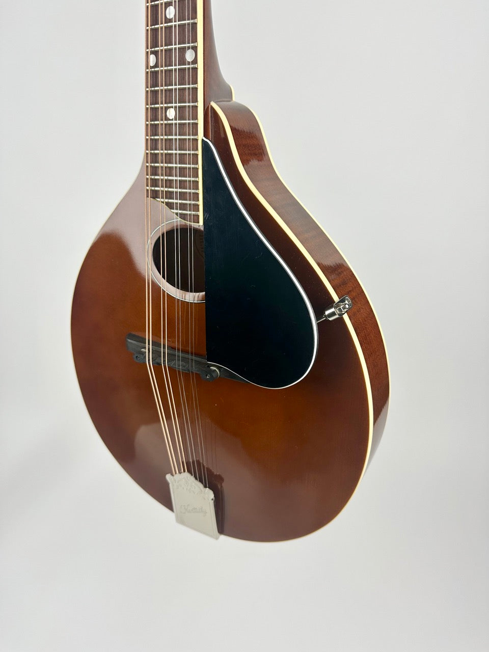 This is a great sounding oval hole mandolin with lots of power and punch! It has a very deep and rich tonal character but still retains brilliance and sparkle, which is a balance usually found in much more expensive offerings. Set up with a nice low action and plays great in all positions. Its hard to imagine a better value in a quality oval hole mandolin.