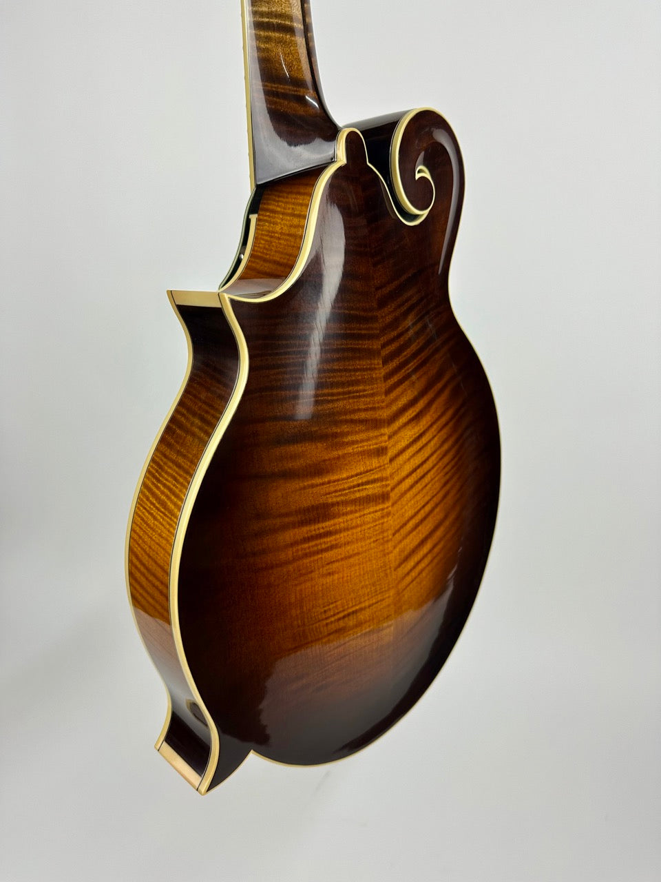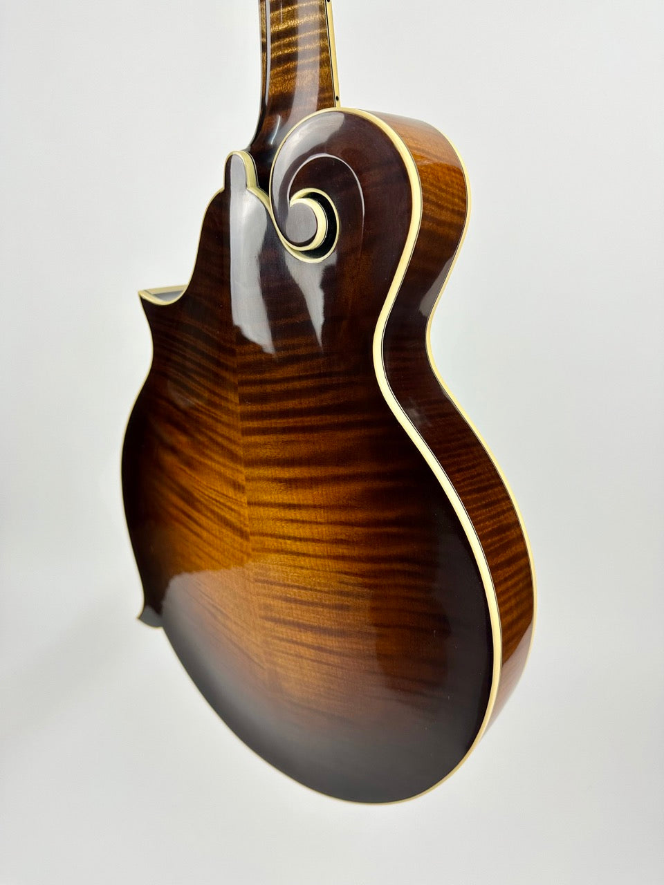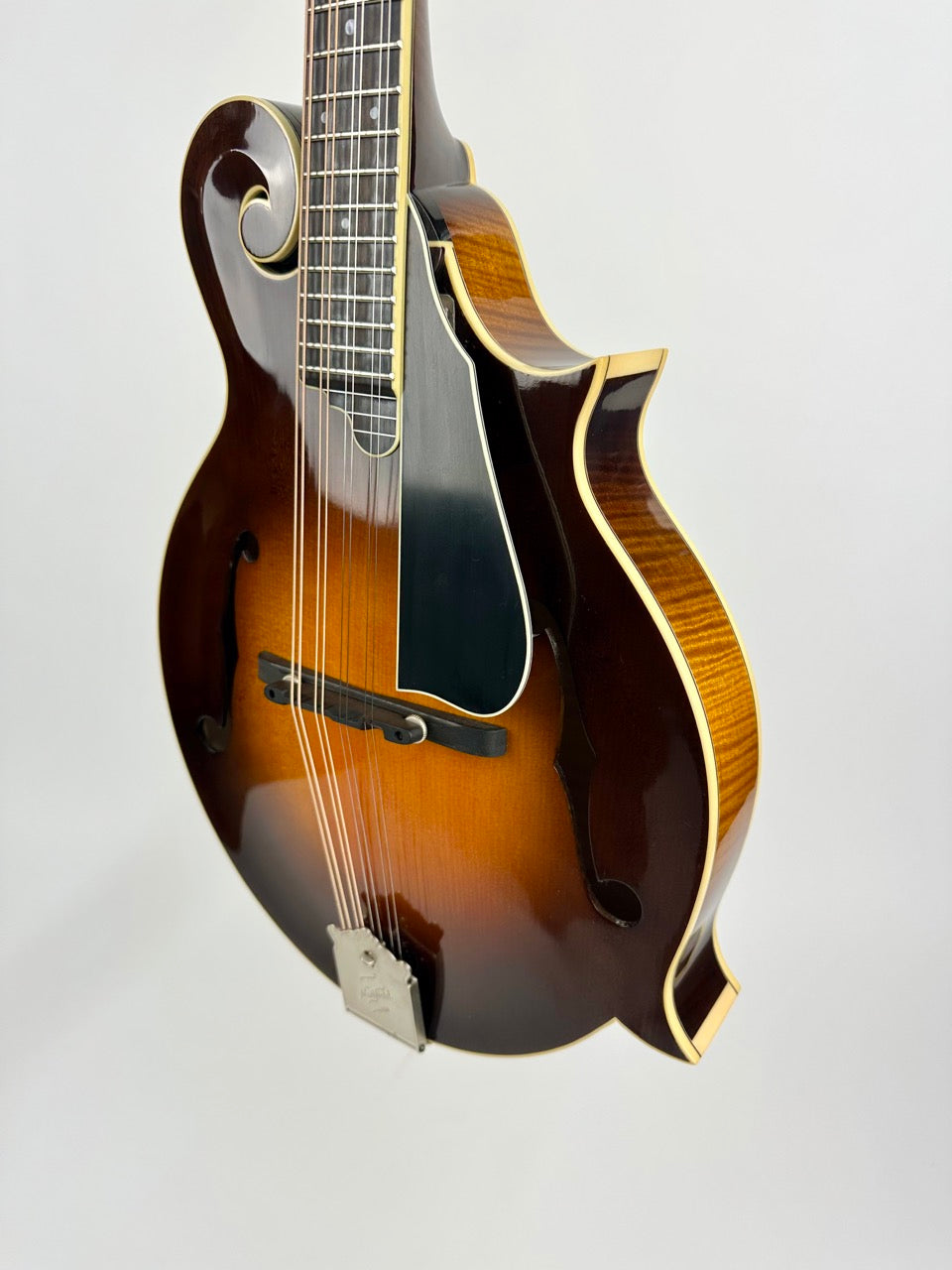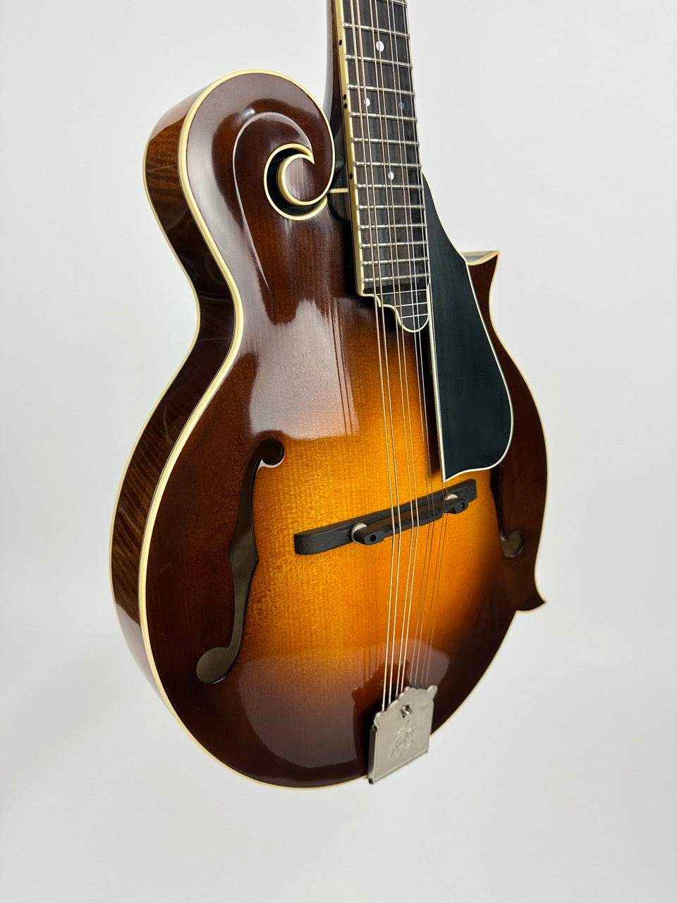 A powerhouse F5 with a huge voice! Deep, lush tonal character while still retaining exceptional clarity and cutting power. Great balance across the strings as well as up and down the fretboard. This one checks all of the boxes in what we look for in the finest mandolins available, and is a shining example of why Northfield mandolins keep popping up more and more in the hands of elite players. This one features an Engelmann spruce top for added depth and warmth, and a wide nut for players looking for a little more room on the neck. Its also a fantastic value as it is priced at over a thousand off the current new price for this model, on a mandolin that is in near new condition.