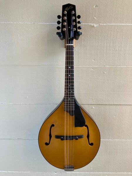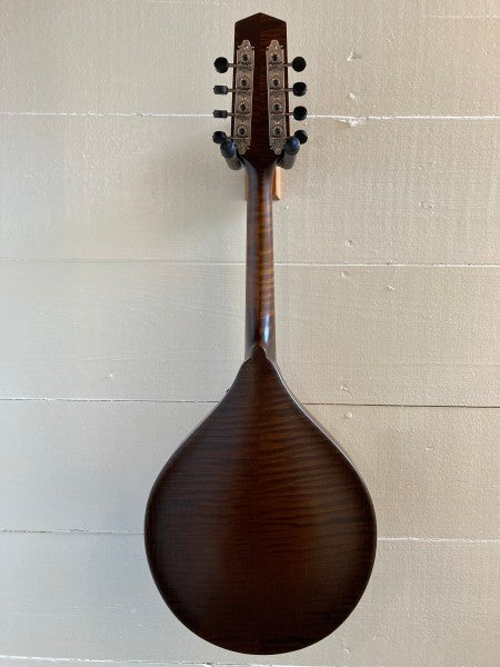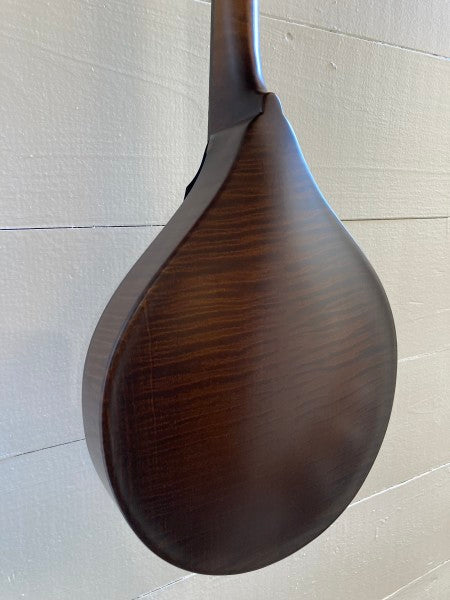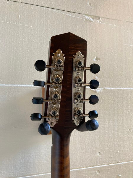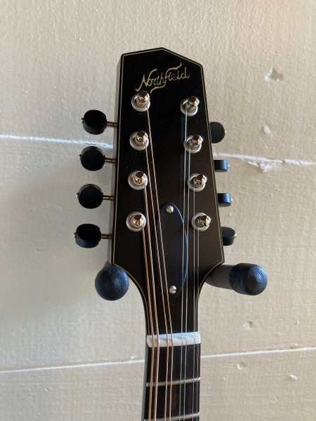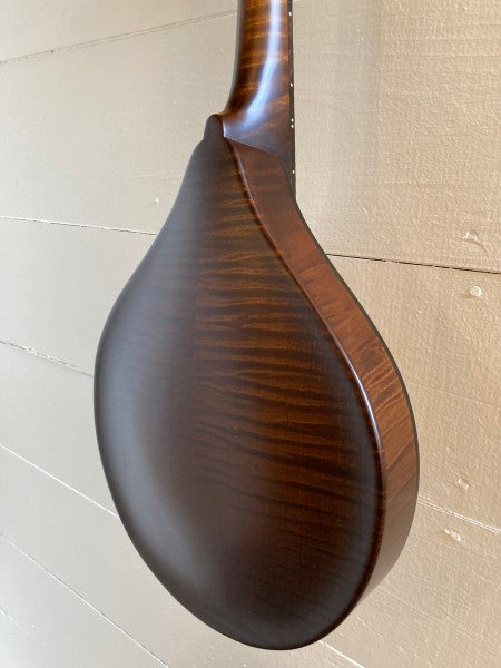 This is our first Model M from Northfield and to say that we are impressed is an understatement. This mandolin easily holds it's own with instruments costing much, much more. The tone has a beautiful depth and complexity while still retaining amazing clarity and note separation. A quality found in only the finest mandolins. While somewhat simply appointed, this instrument is absolutely gorgeous and we doubt the pictures do it justice. The highly flamed dark back and sides just pop against the amber top, and of course the fit and finish are top level. The setup is perfect and exemplifies Northfield's reputation for buttery playability. Special Engelmann spruce top, highly flamed maple back/sides/neck, varnish finish, Nugget tailpiece, ebony adjustable bridge, ebony fretboard, Gotoh nickel tuners with black buttons, 1-1/8" bone nut, radiused fretboard. Comes with a Northfield Airloom Recurve case.
