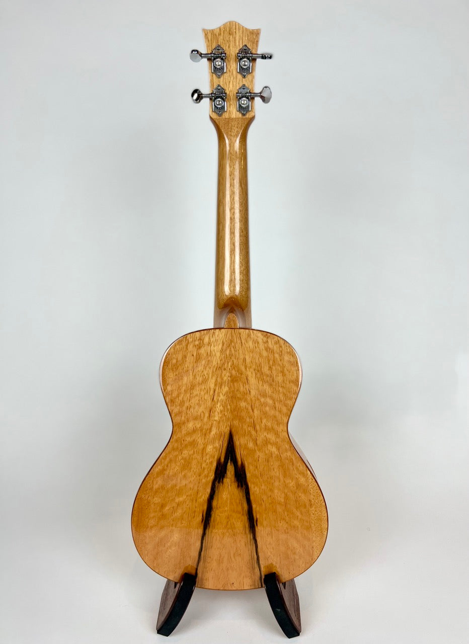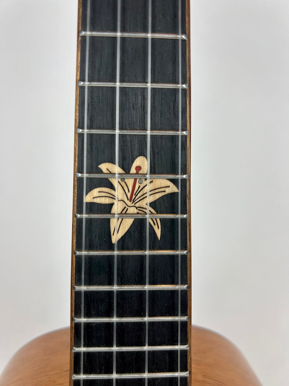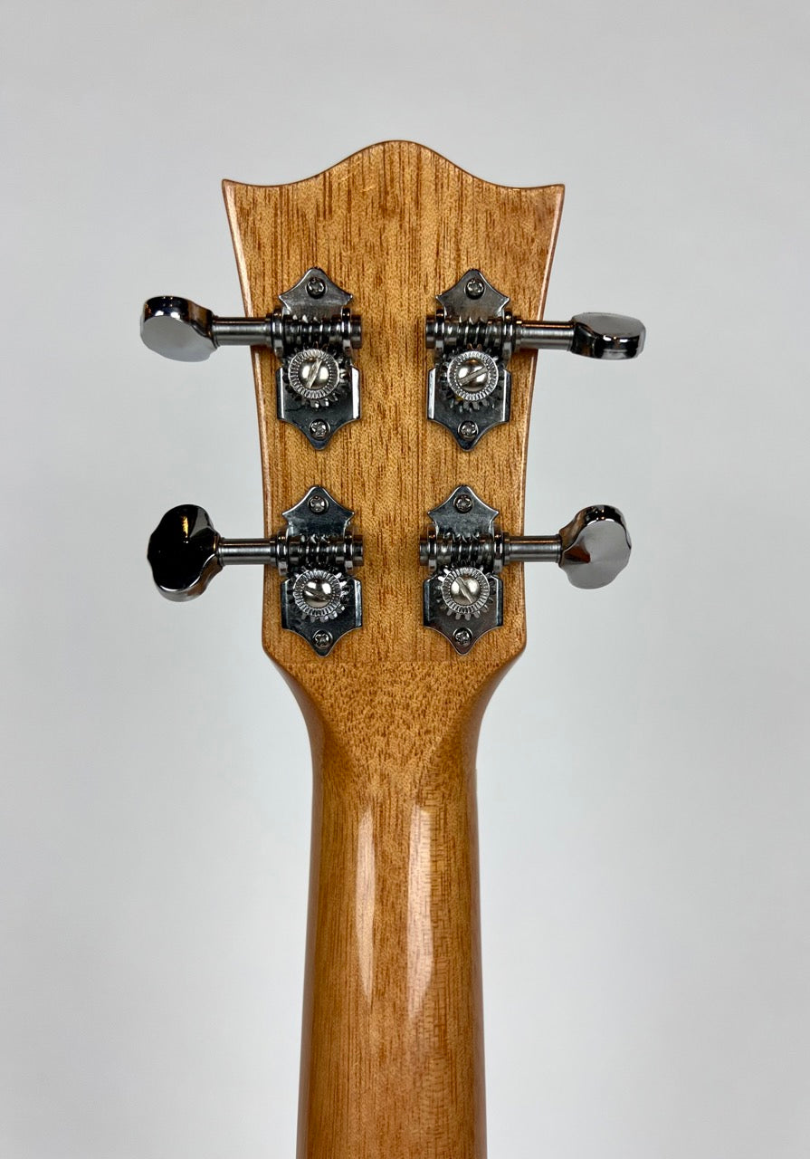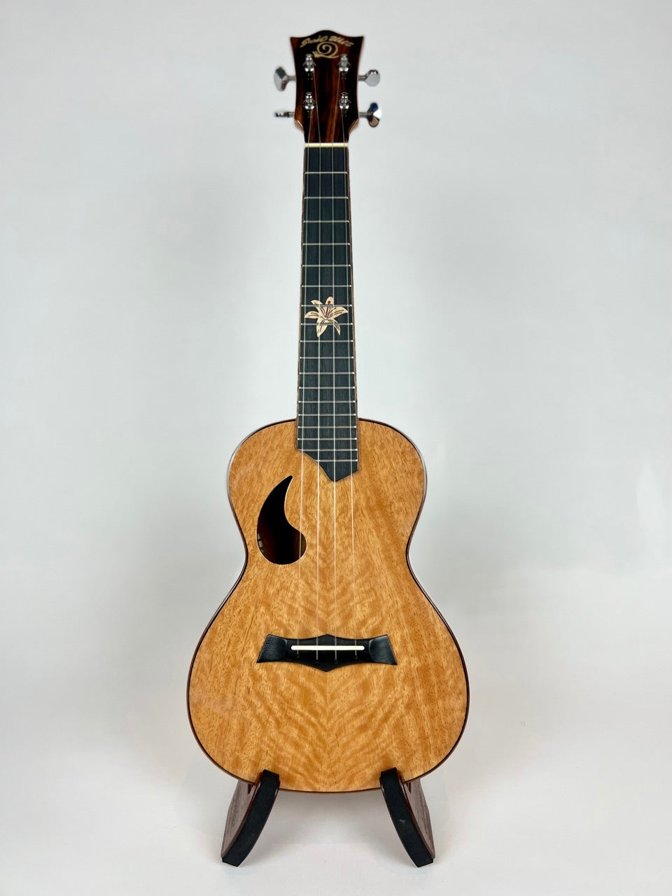 A beautiful and unique concert ukulele from Snail. The teardrop sound hole and side port offer a wonderful and different tonal experience. Lots of snap and pop but also a nice warm complexity underneath. *wood figure will vary on individual instruments. Comes with a gig bag.